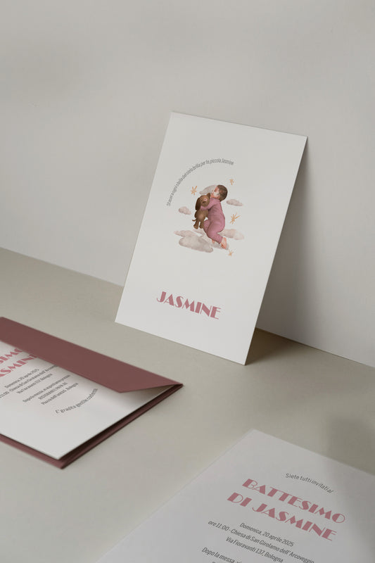 ELISABETTA - Invito Battesimo mongolfiera rosa