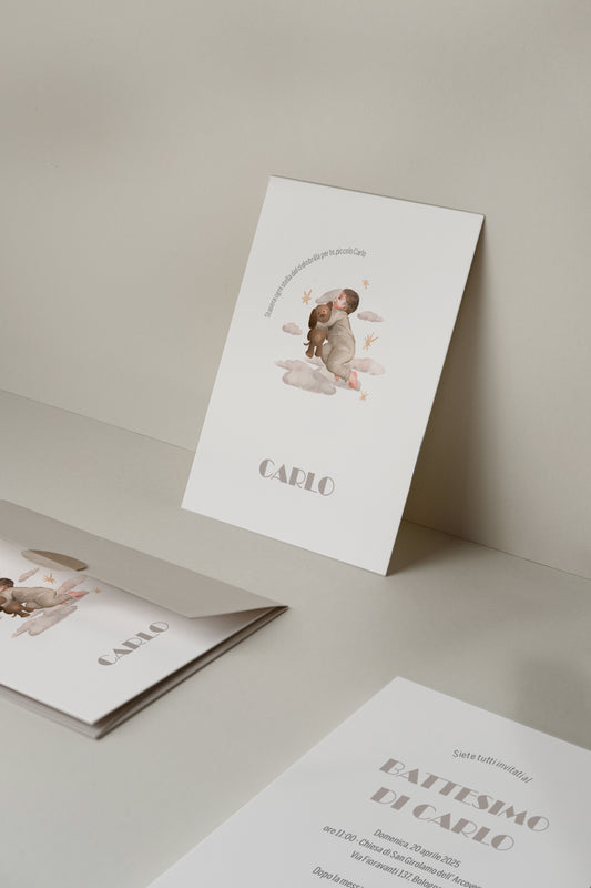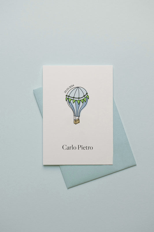 Carlo Pietro - Invito Battesimo mongolfiera azzurra